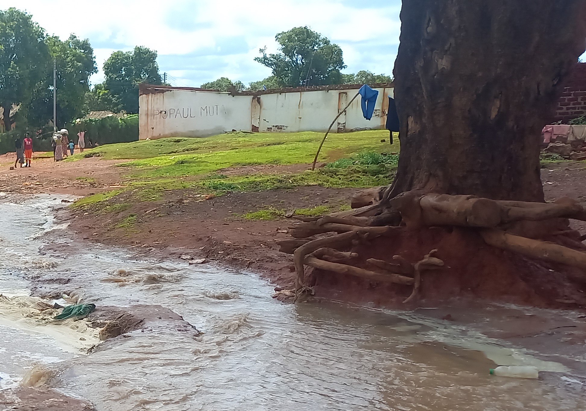J’ai pris le temps de suivre l’itinéraire de cette eau jusqu’à sa source. J’ai finalement compris qu’il s’agit de l’eau de la carrière Luhongo, carrière acquise par une entreprise locale. Cette carrière était noyée avec l’eau de pluie. Les creuseurs artisanaux voulaient reprendre du travail. Alors, ils ont frayé le passage à l’eau qui trainait dans les différents puits pour dégager la carrière des eaux de pluie. Et c’est cette eau qui s’est retrouvée dans plusieurs avenues du quartier Katshoma : Mura, Kasenga, avenue du 24 et Kamina. Sur l’avenue Kasenga, parents et enfants ont du mal à sortir de leurs parcelles. Ils sont obligés de mettre les pieds dans cette eau pour traverser l’avenue.