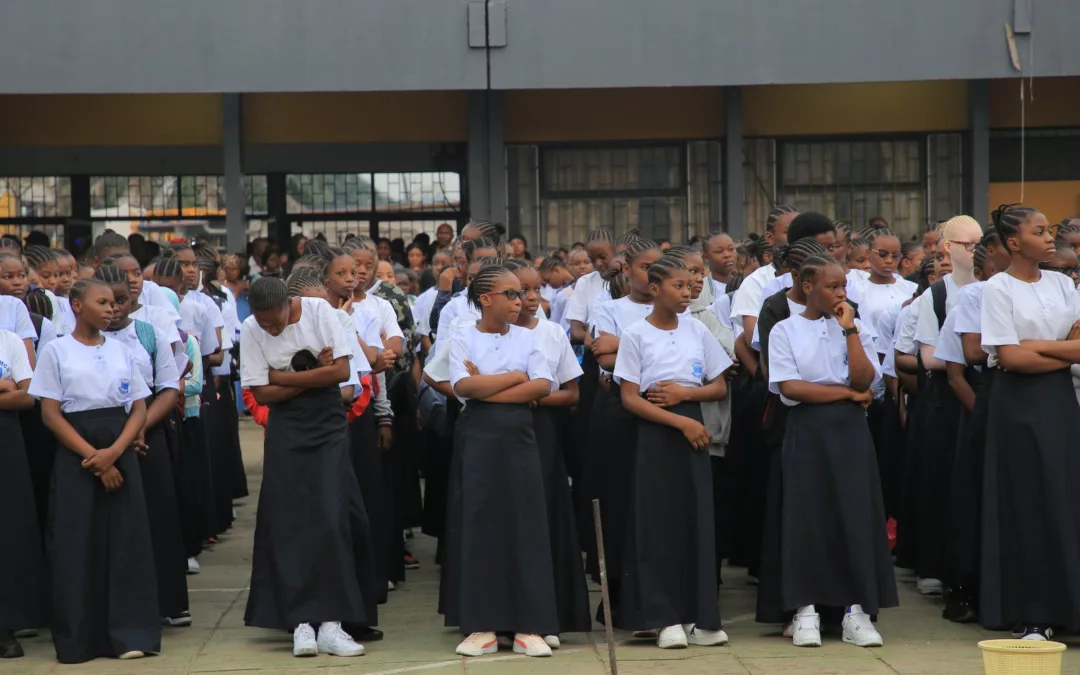 Lycée Shaumba. A 7h du matin, les premiers élèves sont déjà présents avec leurs parents pour la rentrée scolaire 2024-2025. Rapidement, elles se mettent en rang pour ce premier jour de classe.
