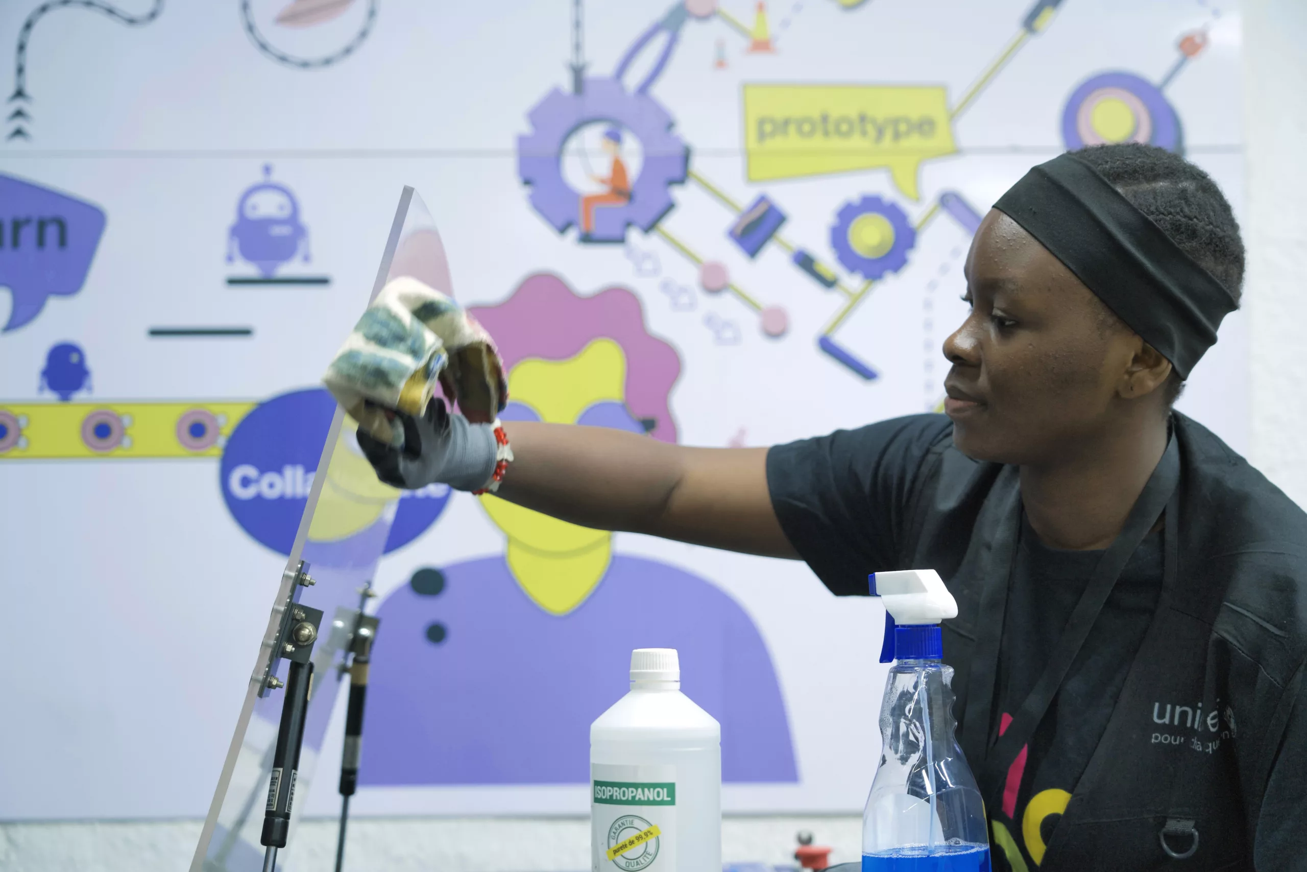 Il offre aux jeunes des formations sur le digital. Alors, à l’occasion de la Journée Mondiale de l’Enfance, je vais me mettre dans la peau d’un responsable d’Orange Digital Center. Je remplace monsieur Arnaud Nedati, Fablab manager au centre. Vous avez bien compris. Je suis Mathyde Kalombo, manager du Fablab le temps d’une journée.