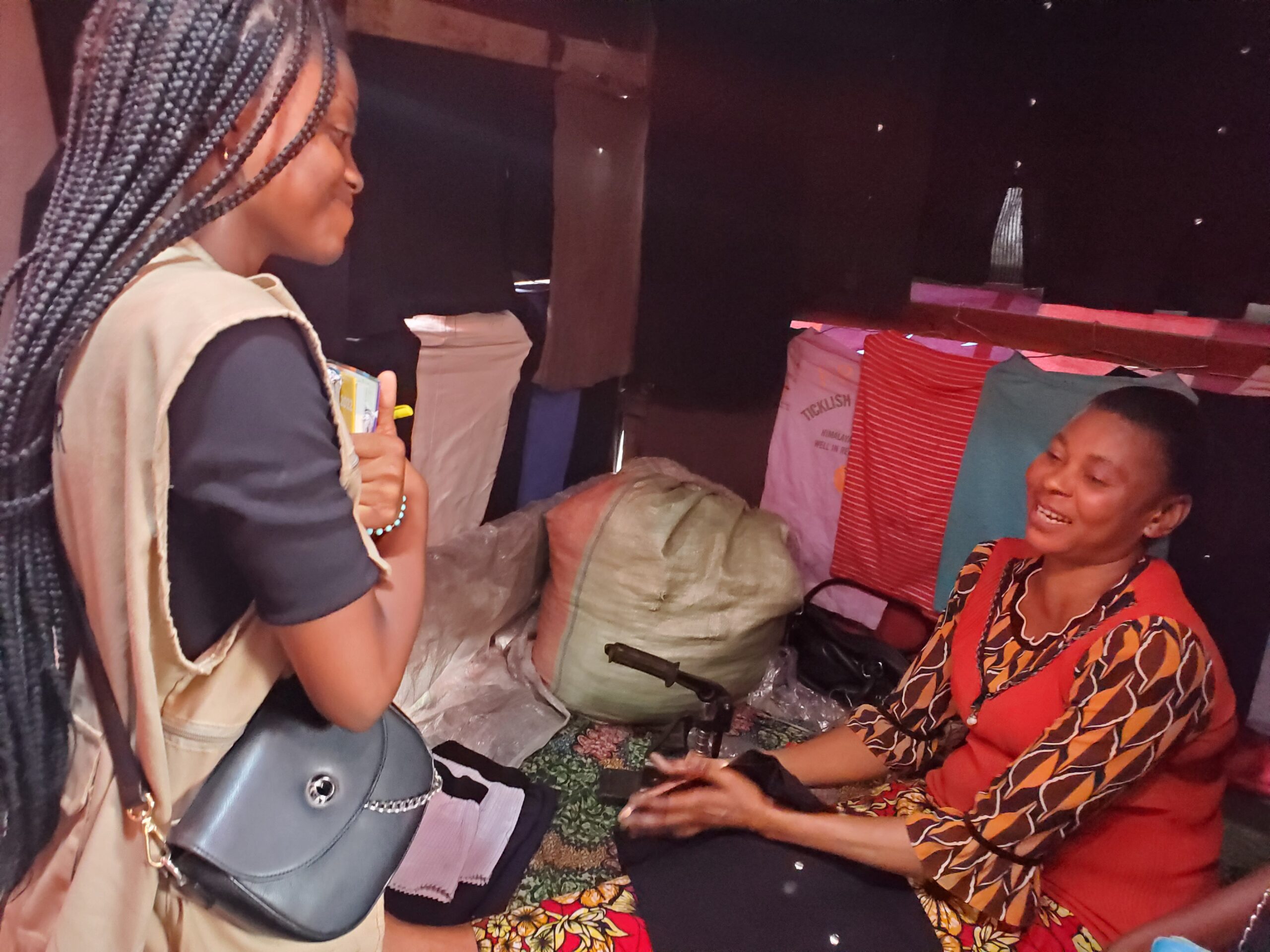 Maman Detty vend des vêtements de friperie pour subvenir aux besoins de sa famille. Elle ne veut pas que ses enfants, qui sont portant en vacances, viennent avec elle au marché. L’aîné de la famille s’occupe de garder les plus petits. Elle nous a expliqué être heureuse de chercher son argent de la bonne manière, sans faire de mal à qui que ce soit.