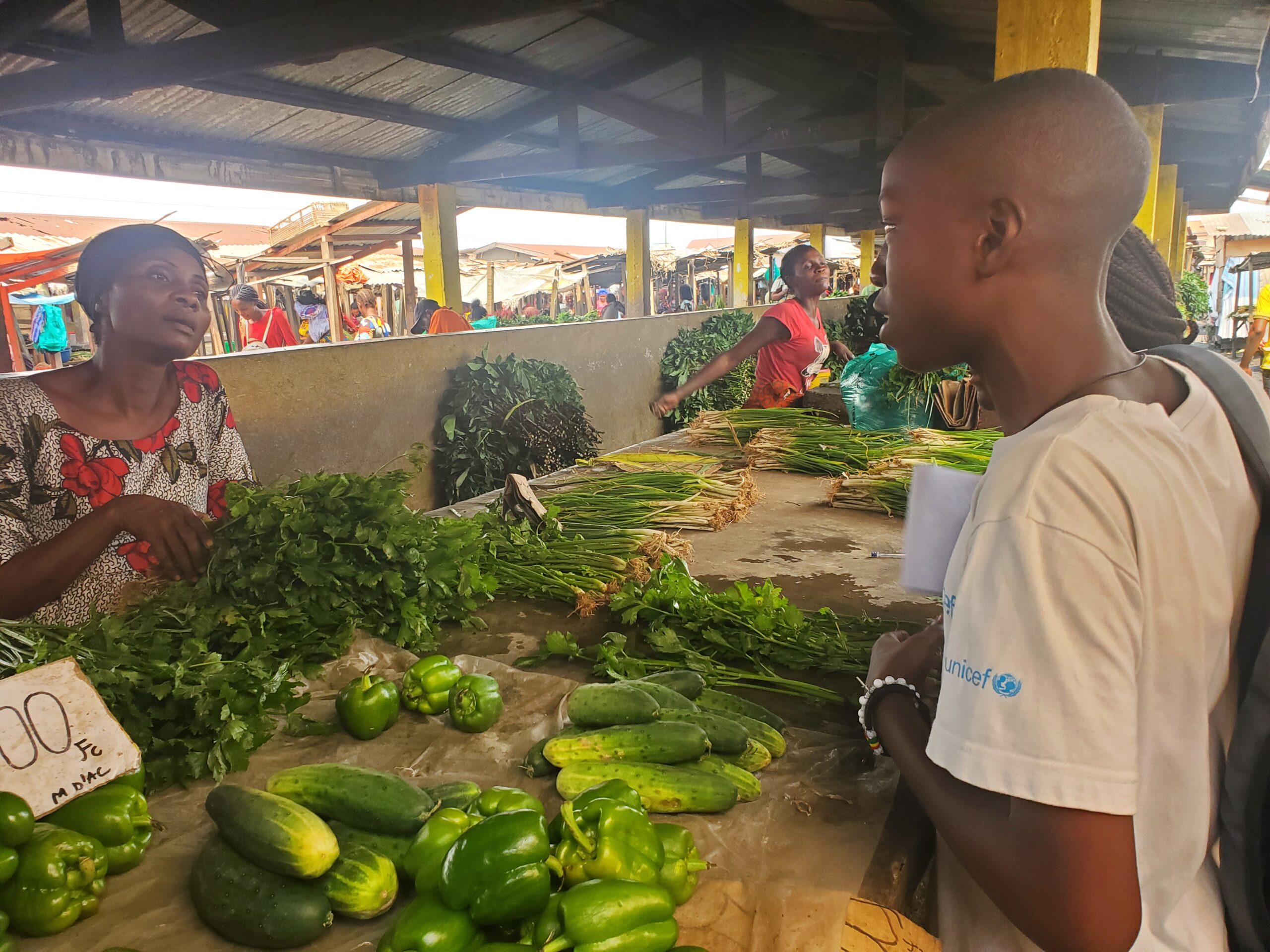 Fanny vend des épices et des légumes au marché central. Elle est aussi la mère de trois enfants qui ont tous réussi leur année scolaire et passent en classe supérieure. Fanny arrive chaque jour très tôt au marché pour étaler ses marchandises pendant que ses enfants restent à la maison. « Je n’aime pas voir les enfants vendre au marché », explique Fanny.