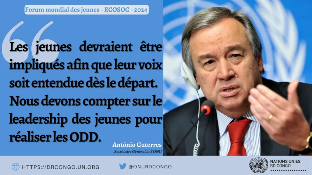 Antonio Guterres, secrétaire général des Nations unies, a souligné l’importance de l’engagement des jeunes dans des domaines tels que le changement climatique, la consolidation de la paix et le développement durable.
