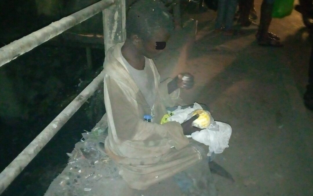 Un jour lors de mon passage, je mangeais une orange. Il a presque sauté sur moi avec les yeux sur mon orange. J’ai compris qu’il avait faim et en avait besoin. Lorsque je lui ai donné le fruit et il m’a souri.