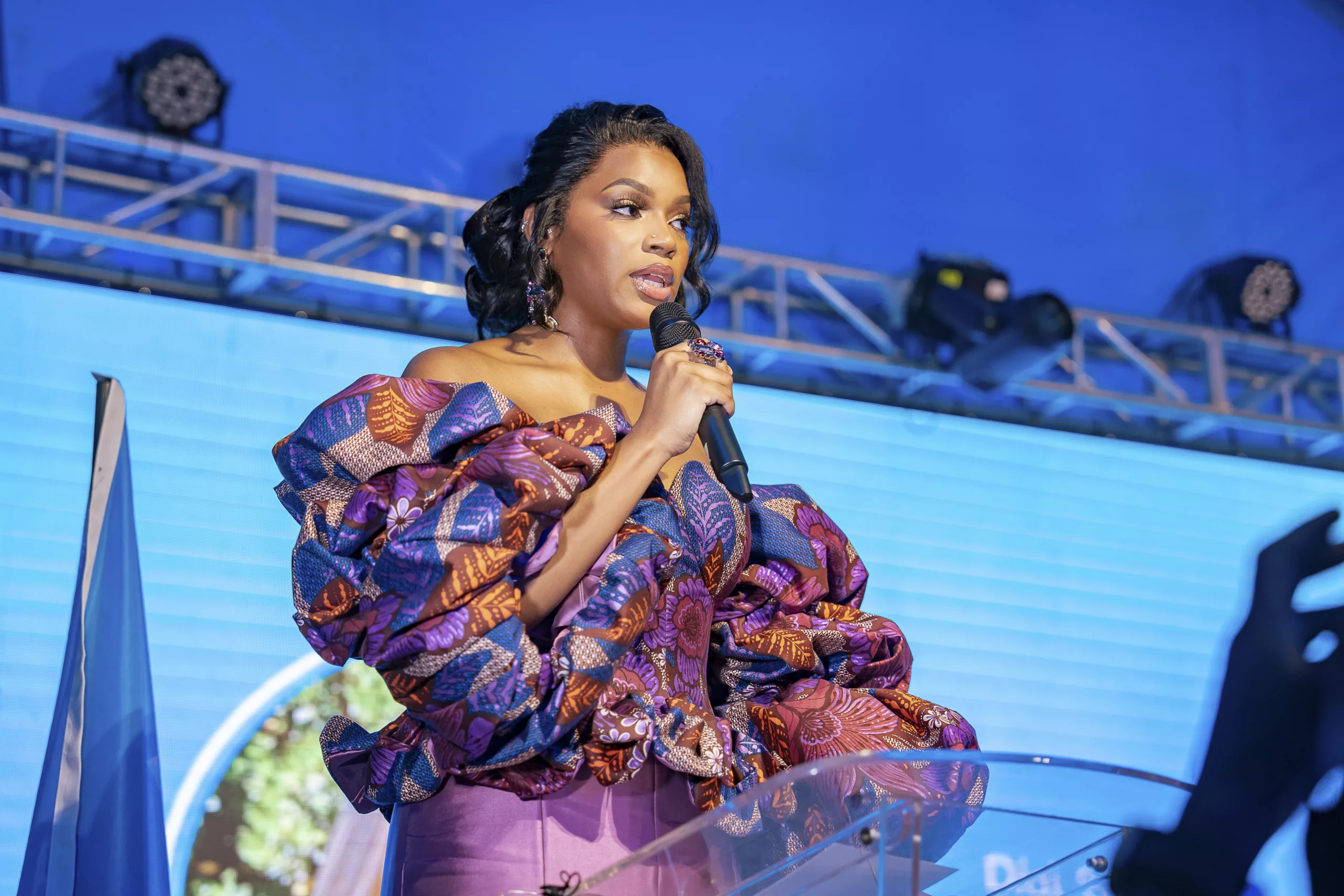 Didistone, ambassadrice nationale de l’UNICEF, partage un message inspirant lors de son discours. Kinshasa, RD Congo.