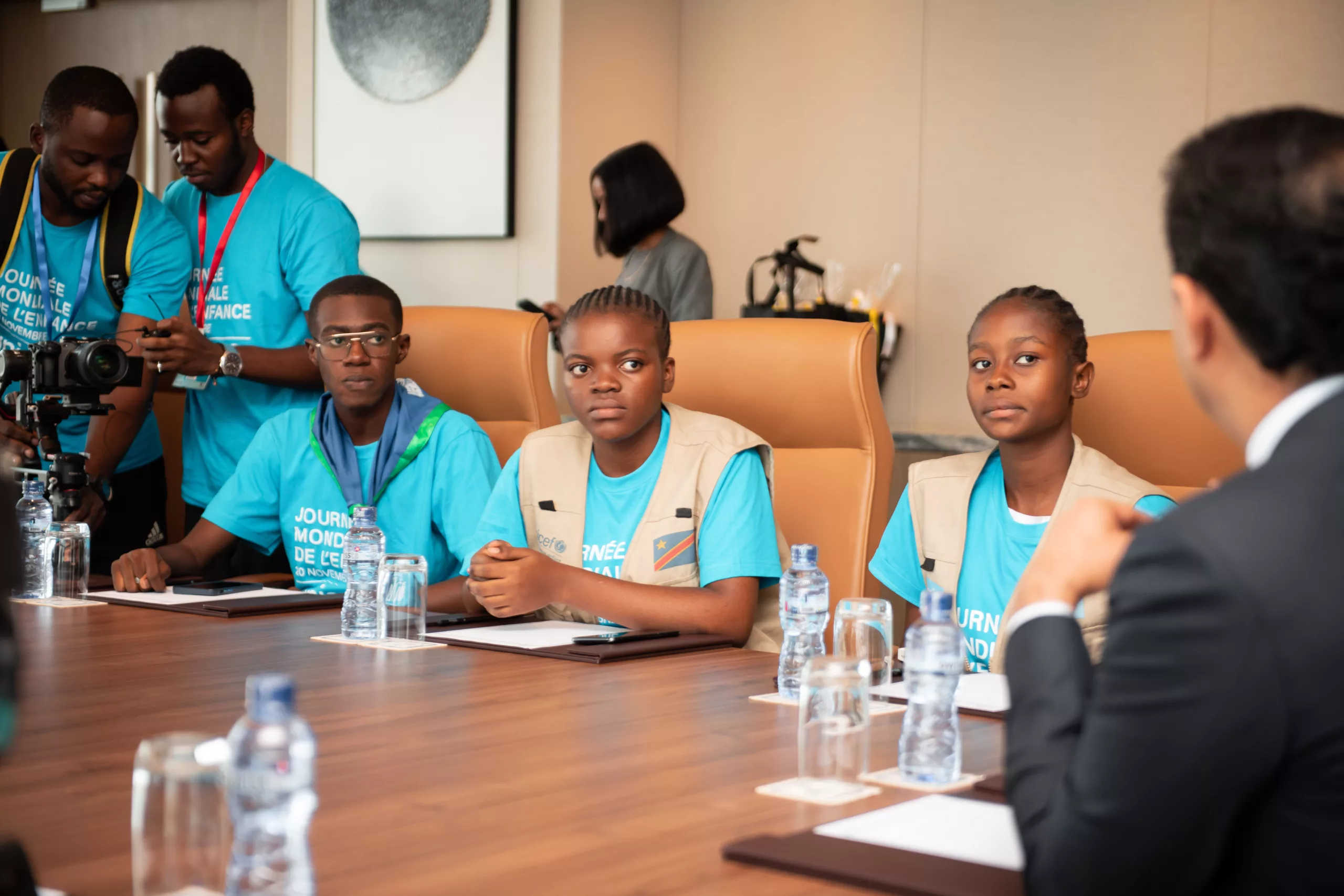 Les enfants reporters interview monsieur Mustapha Rawji, directeur général de la Rawbank à Kinshasa, le 10 novembre 2024.