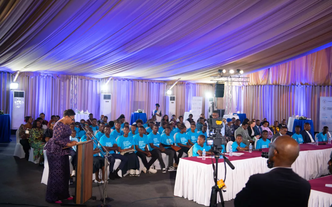 Cette année, la célébration de la journée mondiale de l’enfance est un peu particulière. Nous célébrons aussi la 35 ème année de ratification de la convention relative aux droits de l’enfant par la RDC. Dans la salle, chaque enfant est assis à côté d’une autorité autour de la table.
