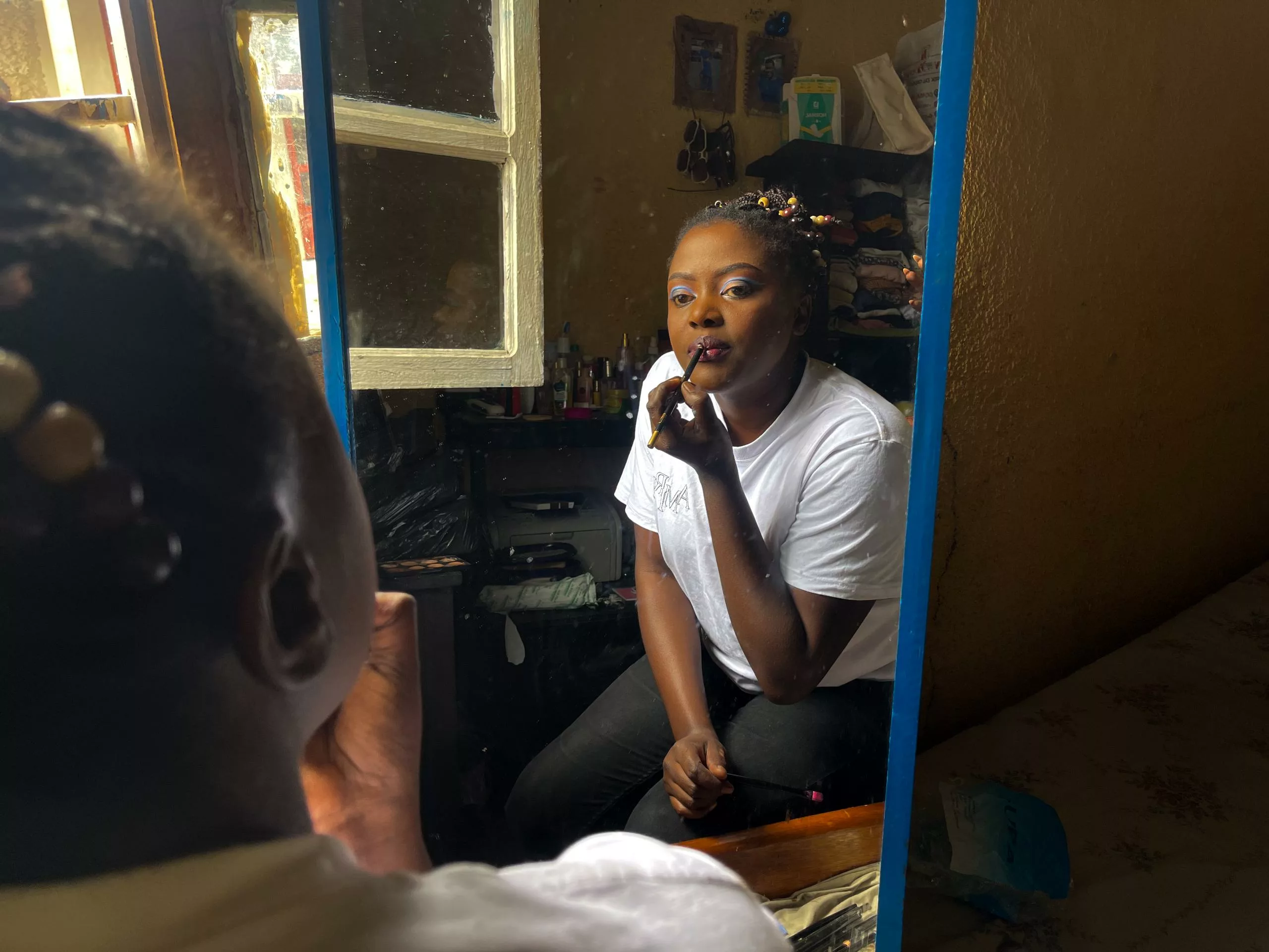 À Goma, Joëlle ne veut pas rester enfermée sans rien faire. « Je me maquille pour faire passer le temps. Mon ambition est de créer une grande entreprise qui place la femme au cœur de l’innovation et de la créativité », explique-t-elle. Elle s’exerce pour avoir la main.
