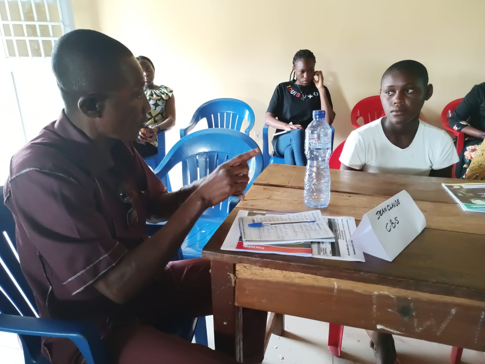 Quand elle a répondu, j’étais encore surpris d’entendre ce que l’interprète me disait. J’ai posé une autre question pour savoir si elle avait vraiment compris le contenu de la formation. De quoi avons-nous parlé pendant la formation ? Joséphine me dit qu’on a parlé de la Convention internationale relative aux droits de l’enfant. Elle m’a dit que cette convention est divisée en 3 parties et elle comprend 4 thèmes. Joséphine a cité 2 thèmes dont : la survie et le développement. Franchement, j’étais perturbé. J’ai trouvé qu’elle est brave pour suivre la formation avec sa technique alors qu’elle est sourde-muette. En fait, après ma discussion avec Joséphine, on a continué à parler et d’autres enfants sont venus discuter avec elle. A un moment donné, elle ne voulait même plus de la présence de son interprète. C’était une belle expérience.