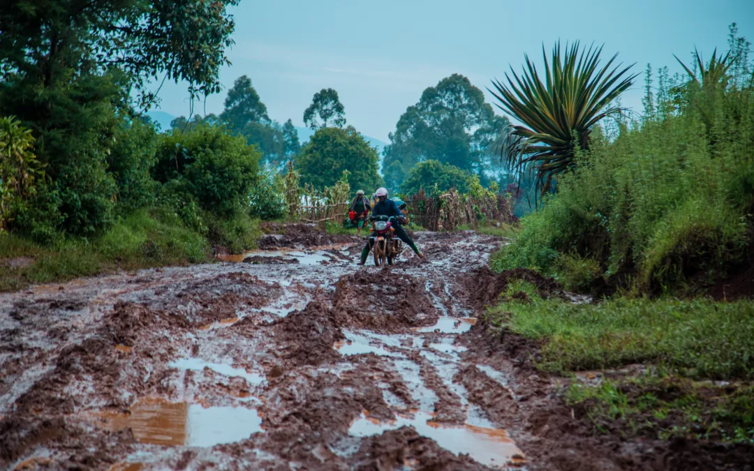 De fois, nous croisos des gros véhicules qui sont chargés des produits agricoles qui proviennent des champs. Certains gros camions évitent des trous et glissent parfois vers nous ou d’autres piétons. A certains endroits, les piétons n’ont pas où se mettre à l’abri lorsqu’ils croisent des gros camions. Et nous élèves devons courir pour éviter la boue au risque de salir nos uniformes.