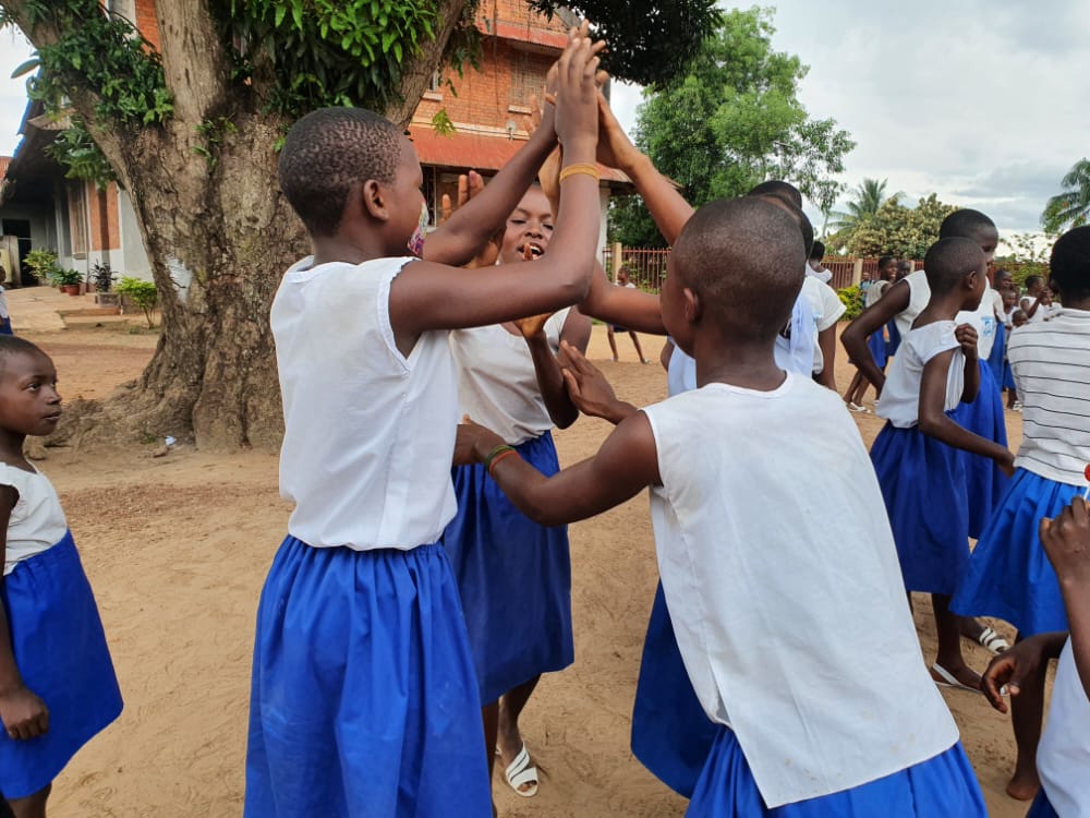 Certains élèves se regroupent juste pour discuter et parler. Ils se racontent des histoires et des confidences. Alors, dans mon école, les filles jouent au « Nzango ». Ce jeu existe depuis très longtemps. Selon Google, le « Nzango est un jeu de danse de terrain de jeu traditionnel local qui a son origine en République du Congo et en RD du Congo. Pratiqué et joué principalement par des femmes pour le plaisir, le sport est un mélange de danse, de chant, de gymnastique et de chorégraphie exécuté de manière énergique ».