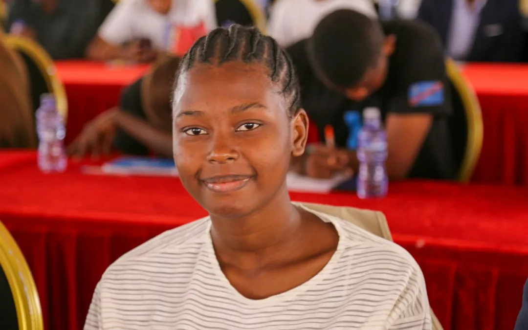 Gloria Ngoya, 16 ans, est Enfant Reporter de la ville de Kinshasa. En 2025, elle a participé aux consultations des enfants et des jeunes pour la révision de la Contribution Déterminée Nationale de la RDC.