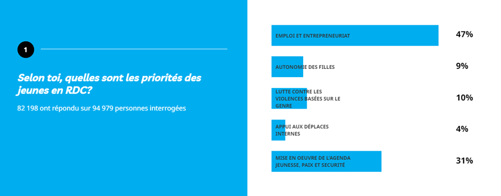 Le Représentant permanent de la RDC à l’ONU a promis son soutien pour obtenir des résultats concrets sur des sujets tels que l’employabilité, l’entreprenariat, la lutte contre les violences, l’autonomisation des filles, la mise en œuvre de l’agenda jeunesse, la paix, etc. Ces priorités sont celles que les jeunes eux-mêmes ont mis en avant lors d’un récent sondage U-Report.
