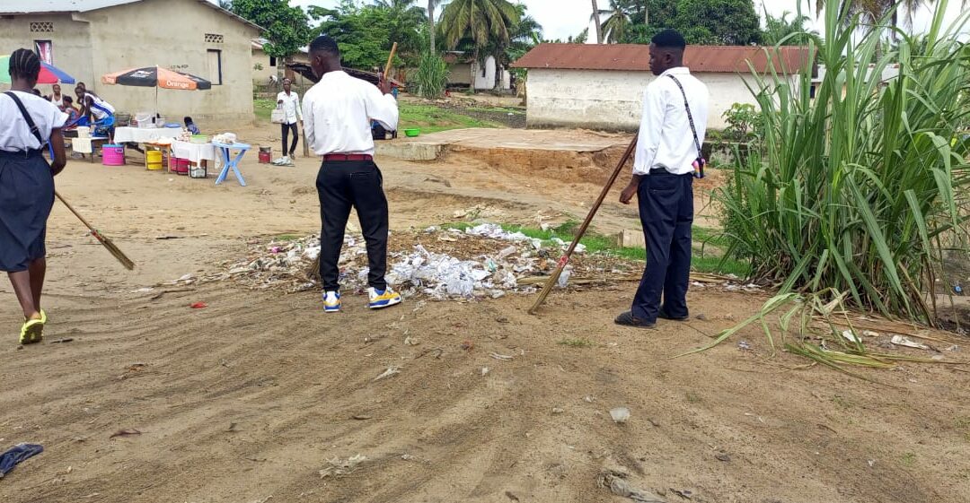 Je me nomme Beteti Kasongo Mbala, Enfant Reporter de Muanda dans la province du Kongo-Central. Chaque samedi, les élèves de mon école pratiquent ce que nous appelons le « salongo », un travail manuel qui consiste à nettoyer l’école. C’est aussi le principe de base de mon école depuis sa création : les élèves sont chargés d’assurer la propreté de leur environnement.