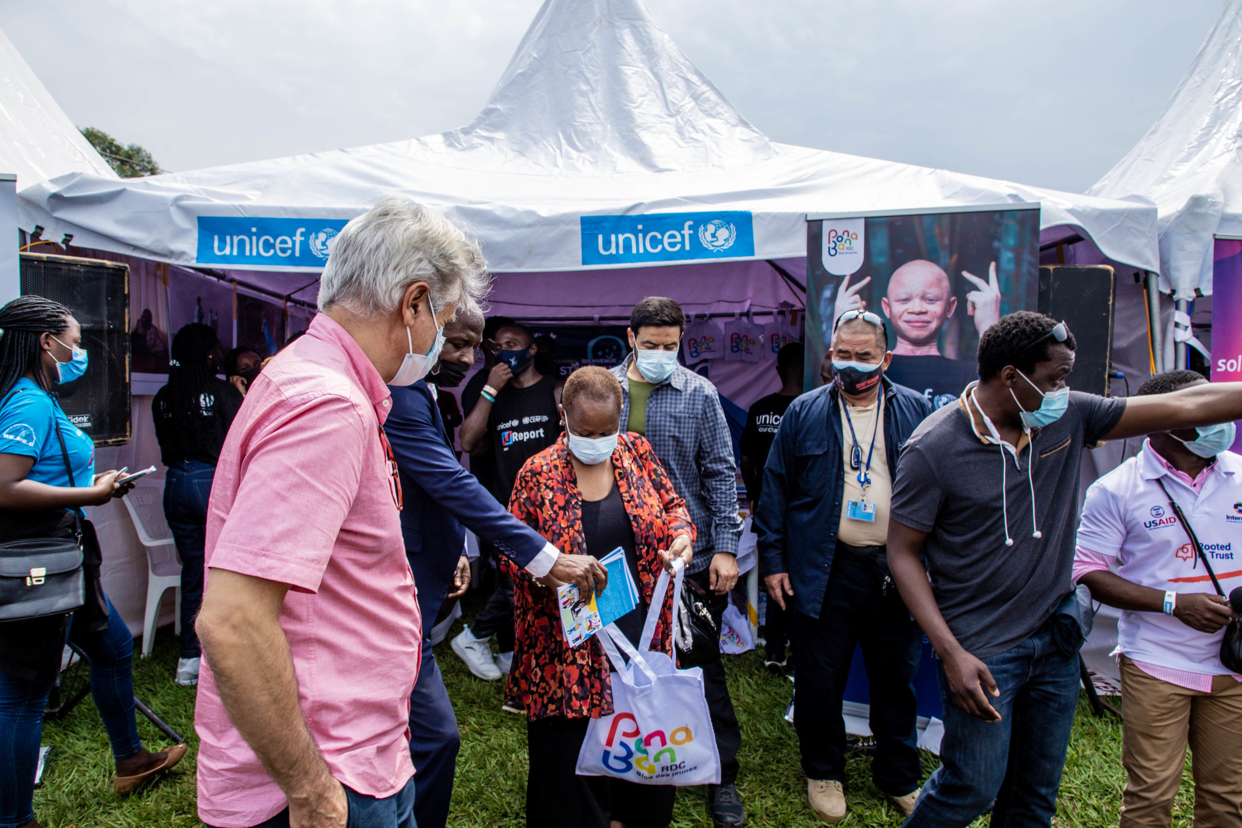 Vous allez peut-être mieux comprendre mon récit en photo : d’abord l’approche, l’accompagnement jusqu’à notre stand, la visite du stand et ensuite, son départ. C’est important pour les enfants d’approcher aussi les autorités qui sont en mesure de prendre des décisions pour changer la situation de beaucoup d’enfants en RDC. Je sais qu’elle travaille pour le maintien de la paix en RDC.