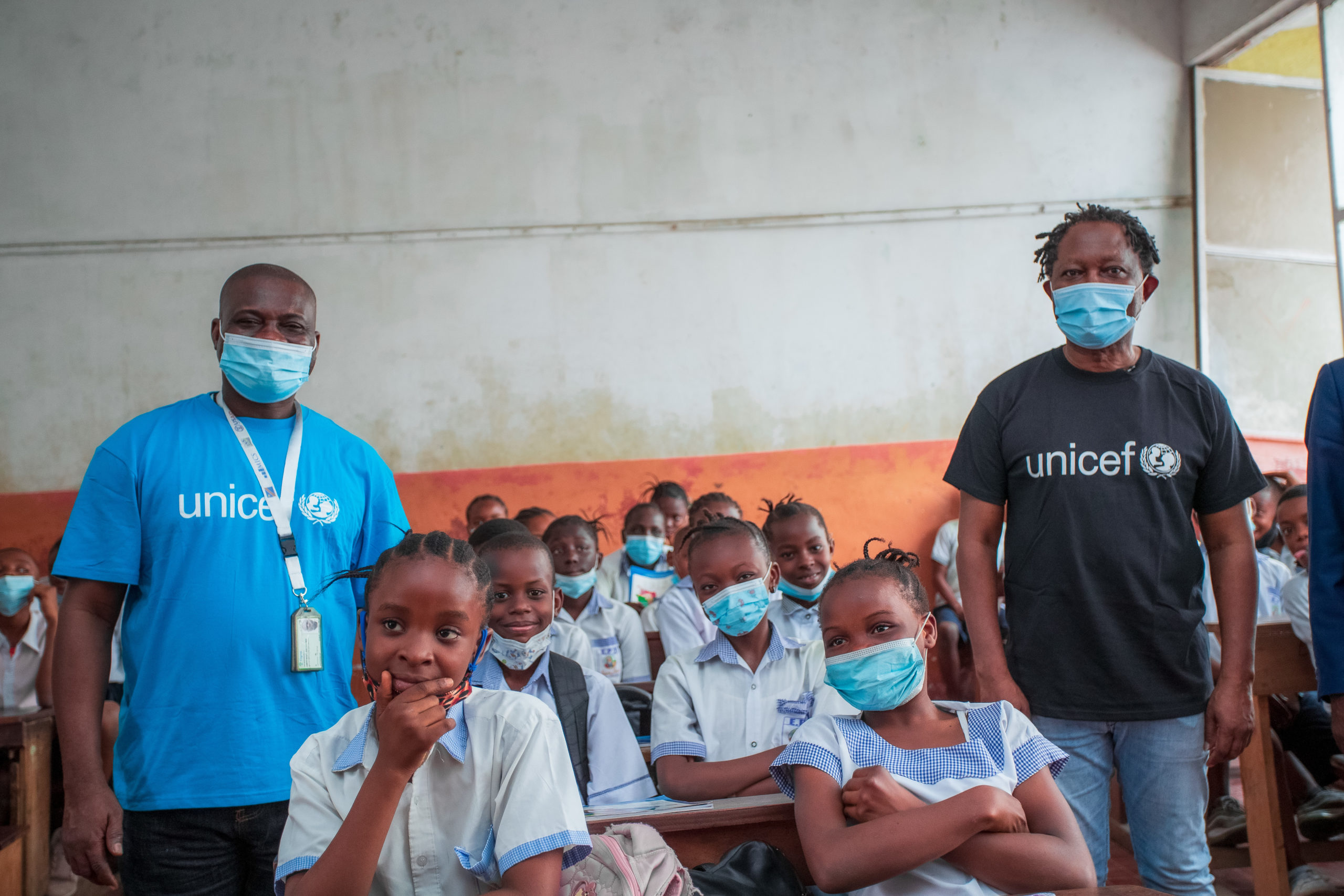 Lokua Kanza encourage un enfant dans une école (@ponabana)