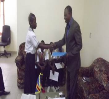 A l’occasion du 24eme anniversaire de la CDE, nous, enfants reporters du Bandundu, avons rendu visite au Président de l’Assemblée Provinciale afin d’assurer le suivi des différents plaidoyers soumis à son appréciation. Accompagnés de nos encadreurs, de la chef de Division du Genre et celui de la Communication, le Président de l’Assemblée Provinciale du Bandundu nous a reçus le jeudi 14 novembre à 11h dans son bureau. Ce qui a été une satisfaction pour nous car nous avons pu lui soumettre certaines de nos préoccupations dont : le plaidoyer sur l’exploitation économique des enfants, le mariage précoce, un rappel sur le tapage diurne et nocturne au niveau du Centre de Lecture de Bandundu ainsi que l’obligation des enfants à participer aux veillées de prières.